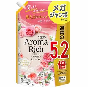 ソフランアロマリッチ ダイアナ フェミニンローズアロマの香り 柔軟剤 詰め替え メガジャンボ 2000ml LION 柔軟剤