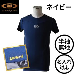 アクティブーム アンダーシャツ 半袖 丸首 無地 野球 ローネック ネイビー ActiveM 高校野球 名入れ ネーム加工無料