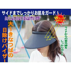 UPF+50 サンバイザー レディース 大きなつば 紫外線対策 耳も隠れる 黒無地 カチューシャタイプ
