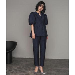 パンツドレス ふくれジャガードブラウス・テーパードパンツ セットアップ 結婚式 パンツドレス パーティードレス オケージョンドレス お呼ばれ 二次会