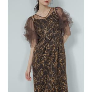 ドレス 刺繍レース チュールスリーブ コクーン パーティードレス 結婚式 お呼ばれ オケージョンドレス