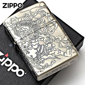 Zippo ジッポライター 風神雷神 縁起物 4面連続デザイン ニッケル古美 NI メール便専用商品