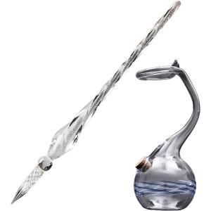 ガラス瓶 と ガラスペン セット 署名 書道 アート 絵画 装飾 つけペン 万年筆 透明 インクボトル MDM( 白色)