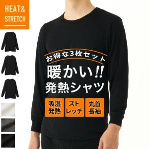 3枚セット 発熱 長袖 丸首 インナー シャツ メンズ 秋冬 3枚組 吸湿 防寒 暖かい あったか ストレッチ アンダーシャツ ウェア 男性 下着