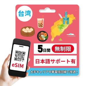 台湾 eSIM 5日間 無制限(低速なし) 5G 4G 高速通信 かんたん設定 中華電信回線 旅行 ビジネス かんたん設定 LINE通話対応 日本語サポート カード プリペイド