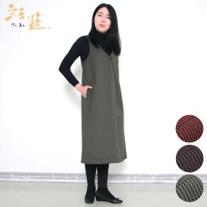 (数量限定) おしゃれ ジャンパースカート (彩藍 刺子花織) 赤 こげ茶 モスグリーン 綿100% (通販サイト・直営店限定販売) 宮田織物 秋 冬 春 レディース