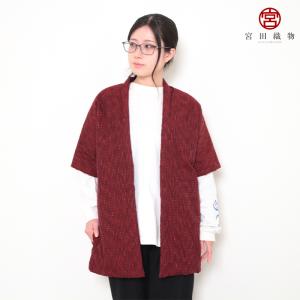 数量限定 五分袖半纏 しずく刺し子 エンジ 中わた:綿100% 身丈74.5cm 日本製 袢纏 半纏 メンズ・レディース 綿入り 和モダン 緑 寒さ対策 防寒 ギフト
