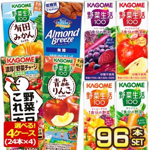 カゴメ 野菜生活・野菜ジュース 選べる4ケースセット 195・200ml紙パック×96(24×4)本入| 送料無料