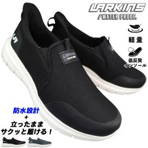 防水ハンズフリーシューズ ラーキンス L204 ブラック 25cm〜28cm メンズ スリッポン スリップインシューズ スニーカー カジュアルシューズ 紐なし靴 防水靴