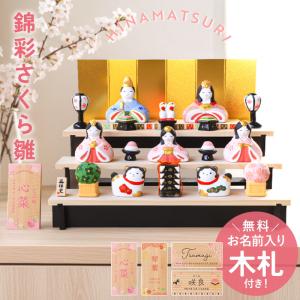 雛人形 コンパクト 名入れ無料 木札 付き かわいい ミニ 錦彩さくら雛 薬師窯 ひな人形 おしゃれ ひな祭り 三段 名入れ 雛祭り お雛様 節句