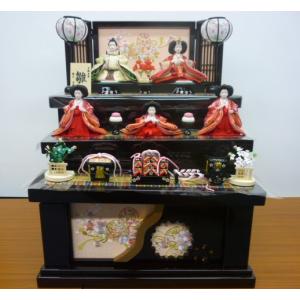 ひな人形☆限定超特価&送料無料☆三段五人飾り☆横幅55x奥行60x高さ70cm☆香織セット☆刺繍入り台・屏風 豪華な金襴衣装着の収納式5人飾