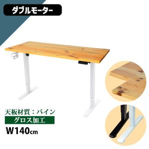 昇降デスク 電動 ハイグレードモデル PSE適合 140cm 1400mm パイン材 高級 木製 天板 グロス加工 動荷重約100kg 静荷重約180kg 上下昇降