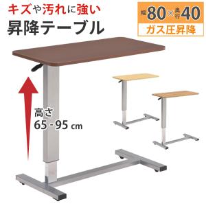 サイドテーブル 昇降式テーブル ガス圧 キャスター付 介護ベッド用テーブル ベッドサイドテーブル 幅80 DW-1320A 電動ベッド用 メラミン天板 360°回転 食事介助