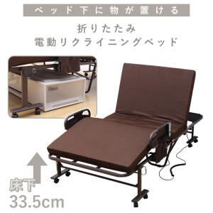 電動ベッド コンパクト 無段階 リクライニング ベッド シングル 下収納 高床式 折りたたみ マットレス付き 高反発ウレタン 省スペース キャスター【Ssize】