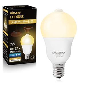 DiCUNO LED電球 E17口金 人感センサー 6W 60形相当 600lm 電球色 2700K 明暗センサー付き 消し忘れ防止 赤外線セン