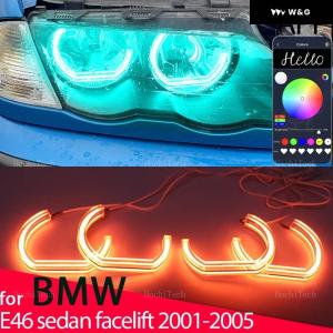 【並行輸入品】 RGBリング エンジェルアイズ 電話アプリ コントロール リモートLED ヘッドライト リング BMW 3シリーズE46セダンフェイスリフト2001-2005ハロゲ