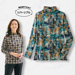 プルオーバー レディース おしゃれ ミセス シニア ファッション 50代 60代 70代 80代 秋冬 リバーシブルプリントプルオーバー