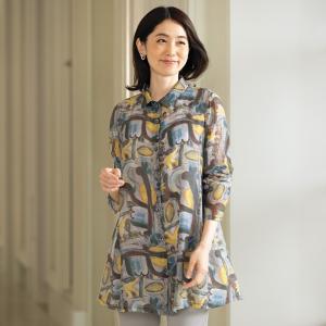 チュニック 大人可愛い おしゃれ 秋冬 ミセス シニア ファッション 40代 50代 60代 70代 80代 総柄プリントチュニック