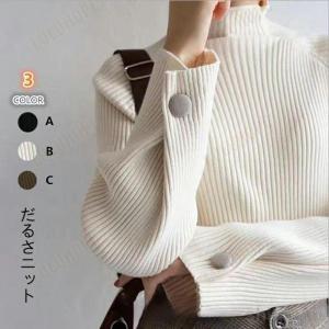 レディース 韓国ファッション Vネック カットソー ニット セーター スリーブ ロングスリーブ トップス 普段着 オフコーデ ベージュ ブラウン F