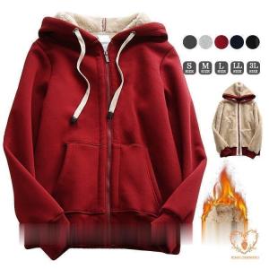 パーカー レディース メンズ 長袖ジャケット 男女兼用 人気 裏起毛 暖かい 防風 アウター 大きいサイズ フード付き 防寒着 シンプル 薄めボア 送料無料
