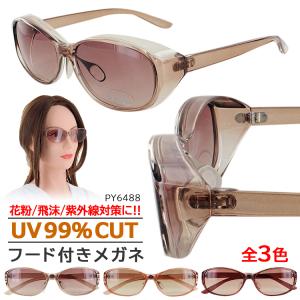 花粉メガネ サングラス 粉塵 黄砂 対策 UVカット ハウスダスト軽減 レディース セルフレーム おしゃれ PY6488 紫外線カット 定形外選択で送料無料