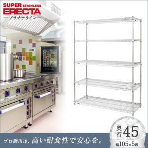 予約販売(11月中旬出荷予定)ステンレスエレクターシェルフ 幅106.2x奥行46cmx高さ158.7cm PSポール 5段 業務用