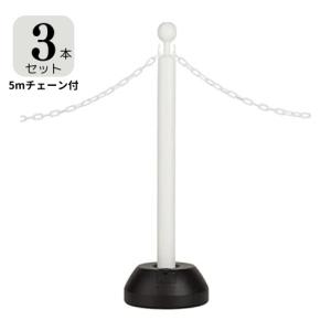 駐車場 ポール チェーンスタンド 3本組 5m 白チェーン付 ホワイト ミツギロン