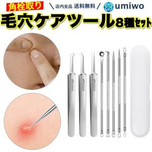 角栓取り 毛穴ケア 8種類セット ニキビ 角栓 毛穴 黒ずみ 除去 ステンレス 圧出 コメドプッシャー ニードル ループ ピンセット スティック 角栓ケア シンプル
