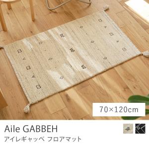 フロアマット Aile アイレ ギャッベ 70×120 インド製 ニュージーランドウール 100% ラグ 長方形 ナチュラル ブラック リビング 玄関 L16 LORRI BUFF 270054930