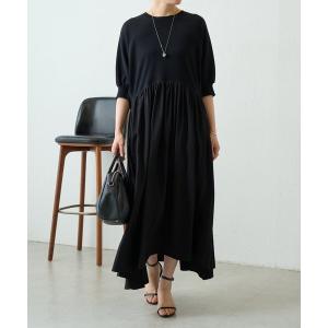 ワンピース ニットコンビギャザーワンピ
