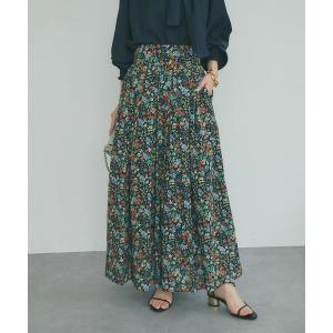 スカート 「今すぐお届け!・春気分」小花プリントギャザーロングスカート