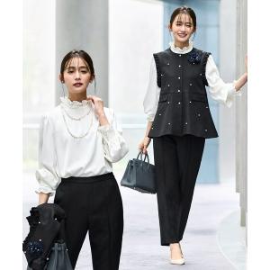 ルイルエブティック RUIRUE BOUTIQUE ストレッチ | ノーカラー タックギャザー ペプラム スリムパンツ スーツ | 入学式 卒業式 卒