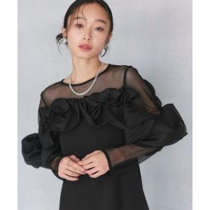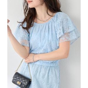 ブラウス シャツ 「セットアップ可・お上品レース」チュール刺繍フリルスリーブブラウス レディース
