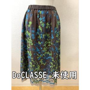 DoCLASSE ドゥクラッセ 定価12900円 タグ付き未使用 チュールスカート ブラウン×寒色系ボタニカル柄 サイズ11