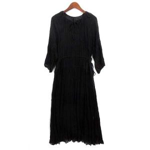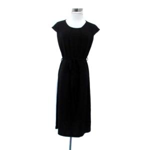 ドゥクラッセ DoCLASSE ワンピース ラウンドネック 半袖 ミモレ丈 リボンベルト付き M 黒 ブラック /HO36 レディース