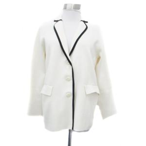 ドゥクラッセ DoCLASSE ニットジャケット オープンカラー ミドル丈 M オフホワイト 黒 ブラック /HO14 レディース