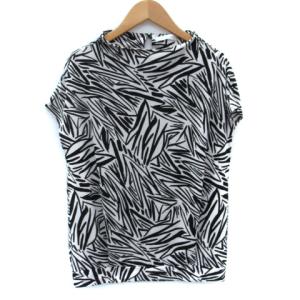 ドゥクラッセ DoCLASSE カットソー ノースリーブ オフネック ゼブラ柄 L 白 ホワイト 黒 ブラック /SM5 レディース
