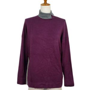 ドゥクラッセ DoCLASSE 配色ニット スリットタートル S 紫 パープル レディース