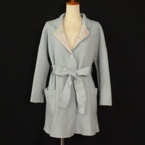 ドゥクラッセ DoCLASSE アンゴラ混 リバーシブルニットコート 9 青 ブルー グレー レディース