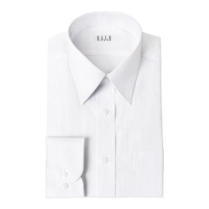 ELLE HOMME 長袖 ワイシャツ メンズ 形態安定加工 ゆったり 白ドビーストライプ レギュラーカラー 綿 ポリエステル