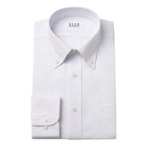 ELLE HOMME ワイシャツ メンズ 長袖 形態安定加工 ゆったり 白ドビー ホワイト ストライプ ボタンダウン【爆買】