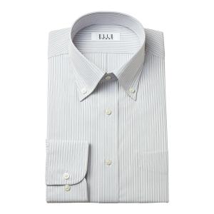 ELLE HOMME ワイシャツ メンズ 長袖 形態安定加工 ゆったり グレー ストライプ ボタンダウン