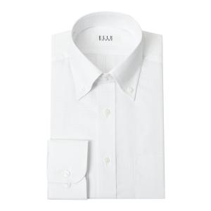 ELLE HOMME ワイシャツ メンズ 長袖 形態安定加工 ゆったり ホワイト 白 ドビー 格子柄 ボタンダウンカラー【爆買】