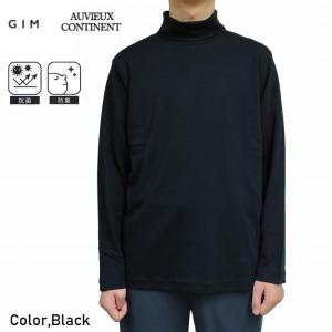長袖Tシャツ シルケットスムス 無地 タートルネック ストレッチ ニットの元祖 25532370 GIM ジム 着心地抜群 首元長め ブラック 抗菌 防臭 AUVIEUX CONTINENT