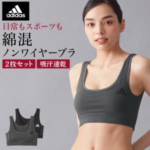 グンゼ GUNZE アディダス adidas ハーフトップ レディース 2枚入 ノンワイヤー ワイヤレス ブラジャー スポブラ 綿混 吸汗 速乾 伸縮 AP46552 M-L