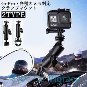 マウント クランプ GoPro用 カメラスタンド スマホホルダー バイク オートバイ 自転車 バックミラー ハンドルバー ブラケット 固定 簡単取り付