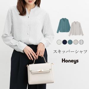 トップス ブラウス 長袖 大きいサイズ オフィス きれいめ スキッパーカラー SALE Honeys ハニーズ スキッパーブラウス