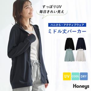 トップス パーカー 長袖 ハニさら ジップパーカー ジップアップパーカー アクティブウェア レディース Honeys ハニーズ UV対策ミドル丈パーカー
