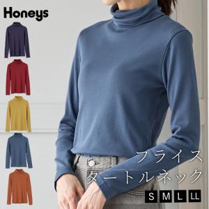 トップス カットソー 長袖 オーガニックコットン タートルネック 綿100% フライス編み 無地 レディース Honeys ハニーズ フライスタートルネック