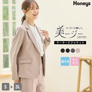 アウター セットアップ ウォッシャブル 大きいサイズ オフィス きれいめ ジャケット レディ Honeys ハニーズ テーラードジャケット